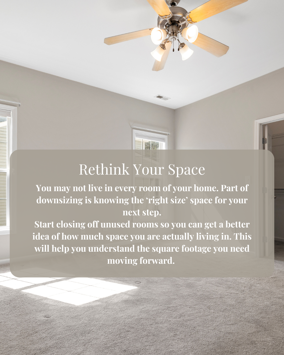 You may not live in every room of your home. Part of downsizing is knowing the ‘right size’ space for your next step.